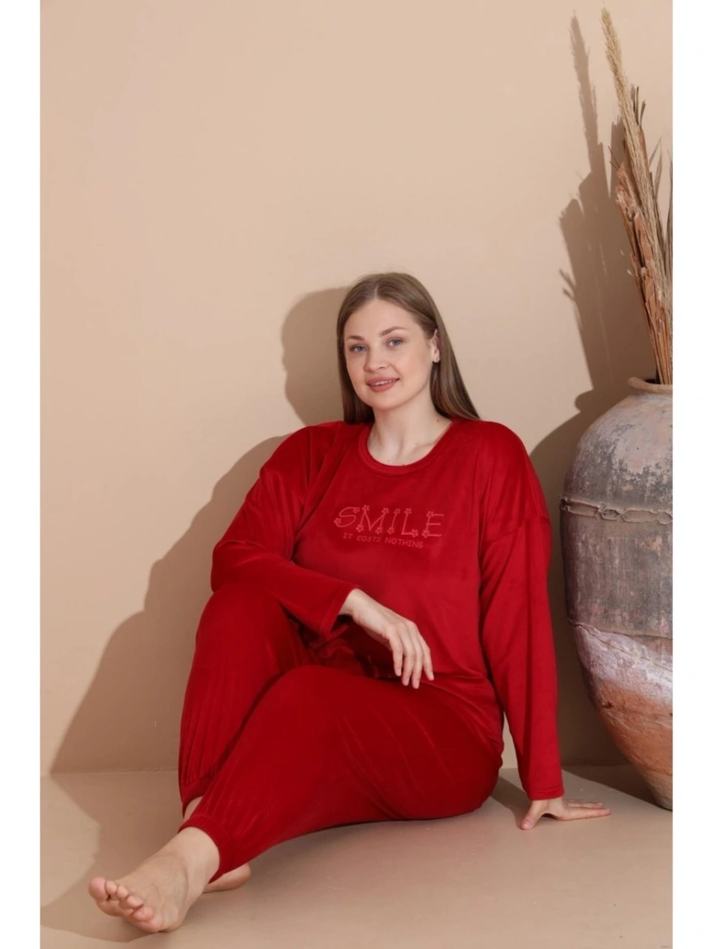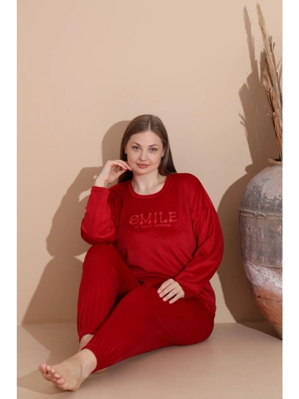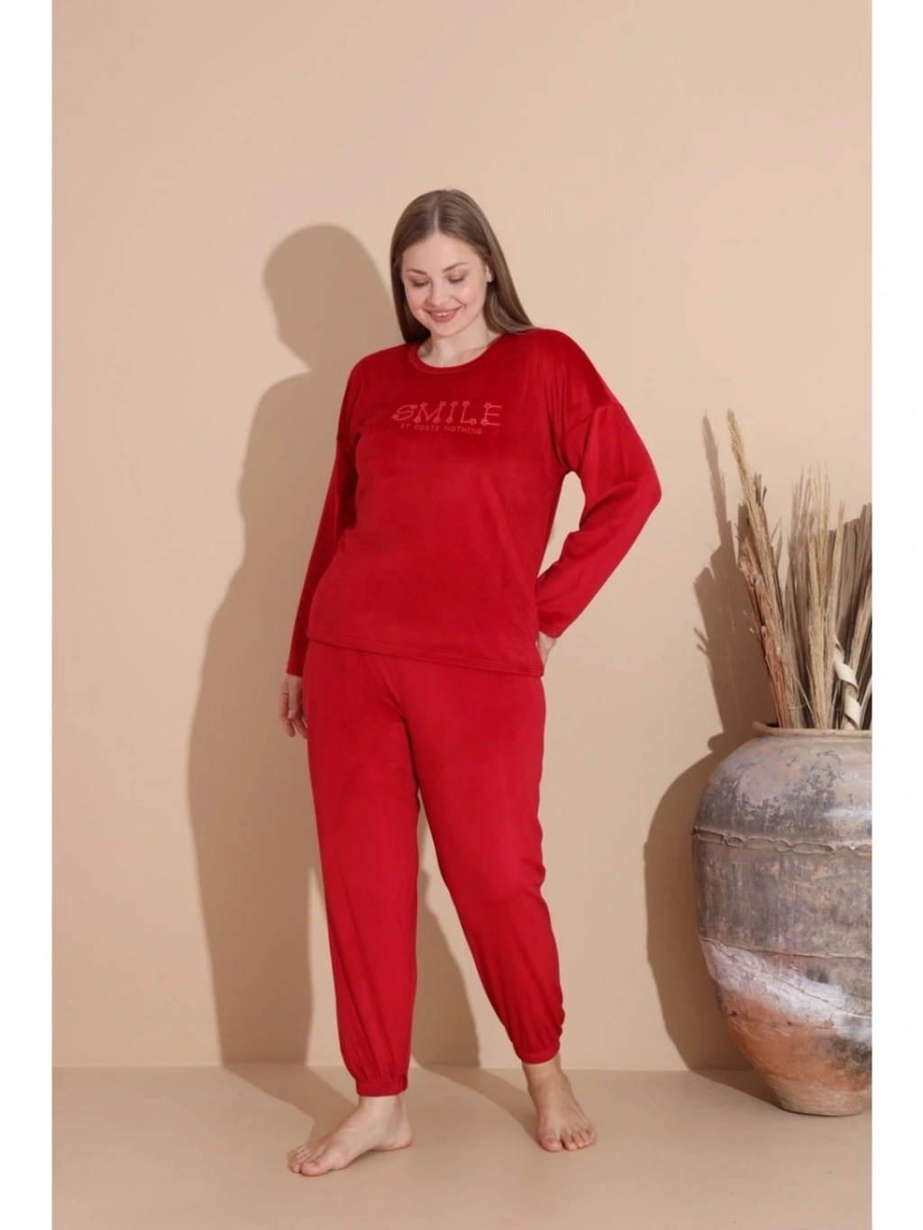 Boyraz 03130 Fransız Kadife Kumaş Uzun Kol Pijama Takımı