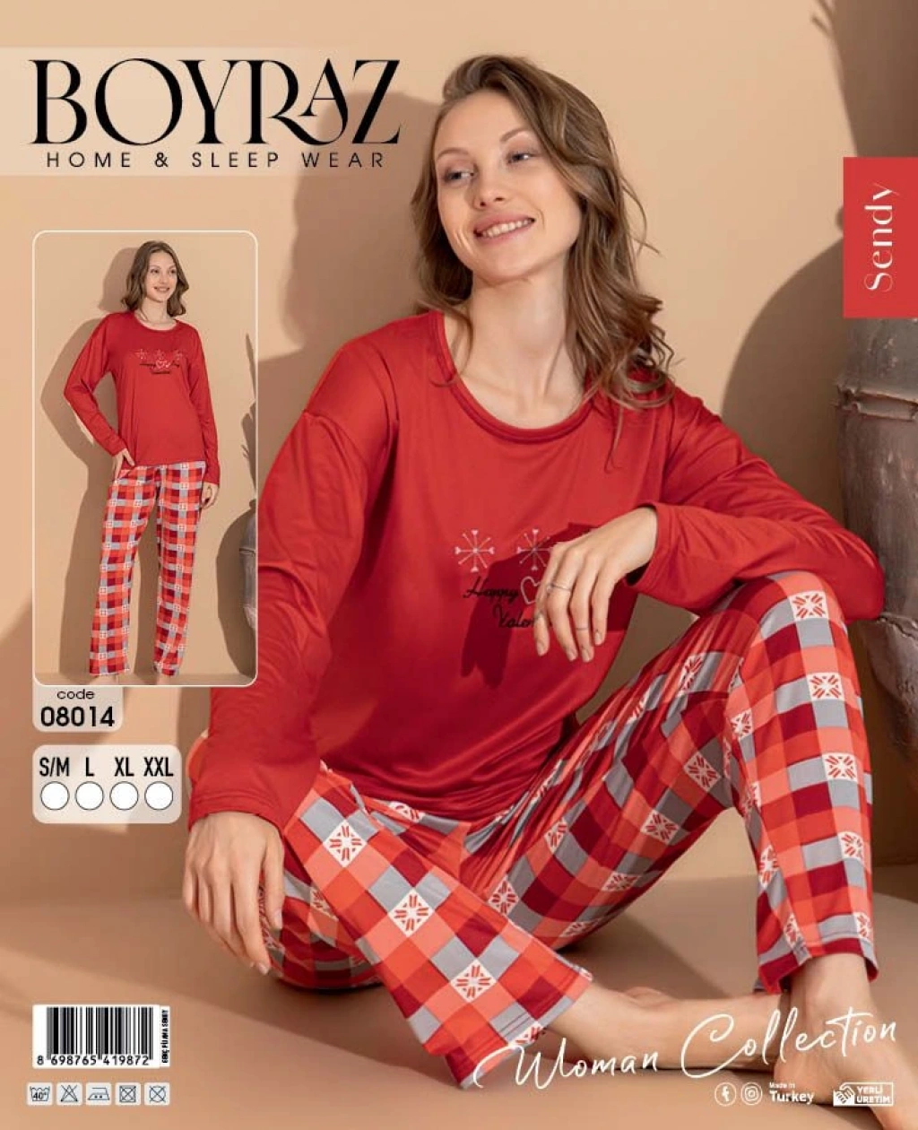 Boyraz 08014 Kadın Sendy Kumaş Uzun Kol Pijama Takımı