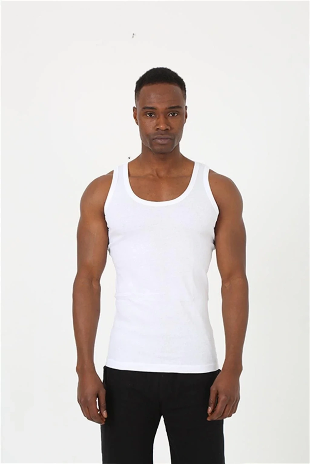 Çamaşır Kenti'nin ürettiği erkek beyaz sporcu ribana atlet, sağlam ve esnek yapısıyla spor aktivitelerinizde size konfor sağlar.
