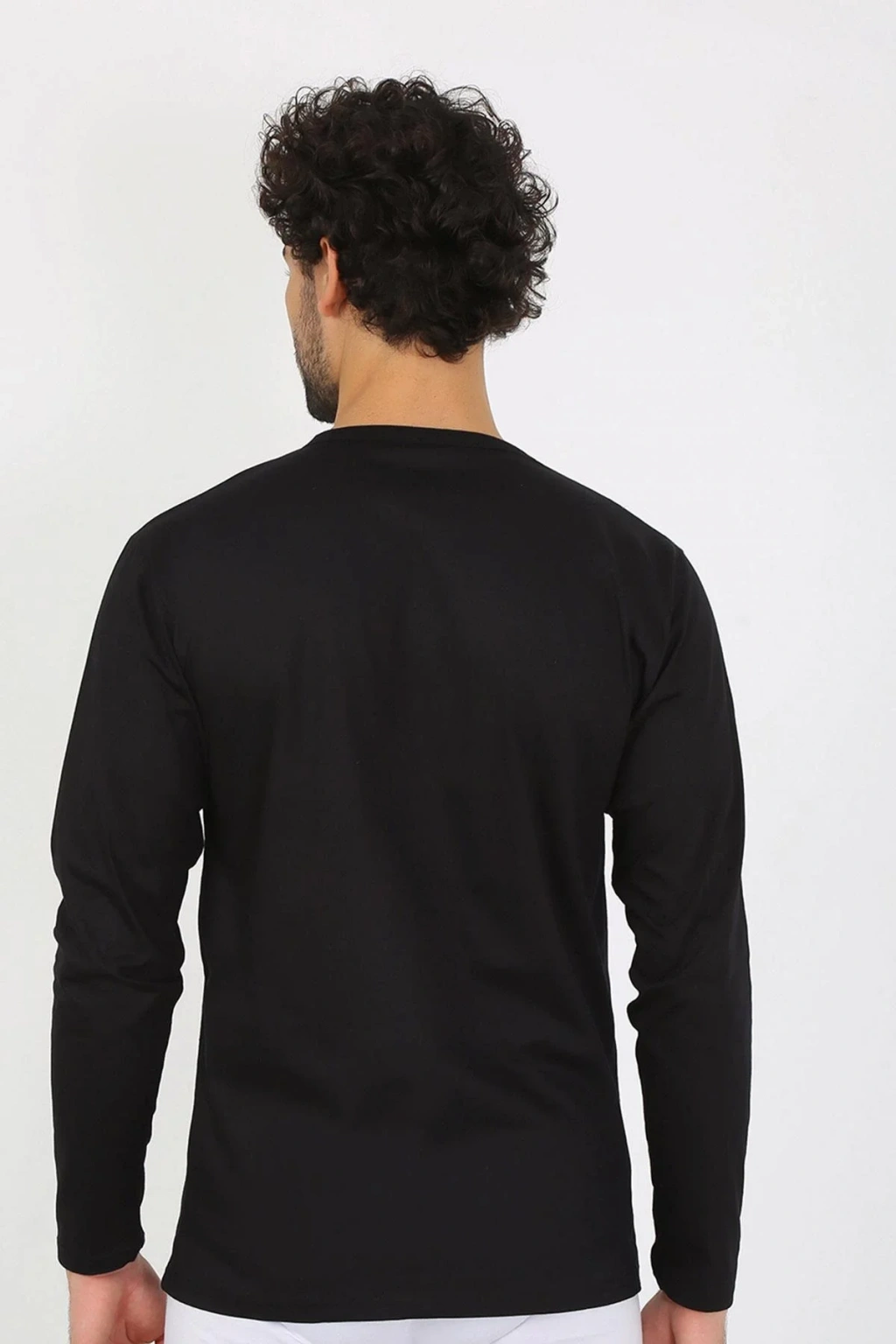 Çamaşır Kenti erkek sıfır yaka uzun kollu siyah fanila, rahatlığı ve şıklığı bir arada sunar.