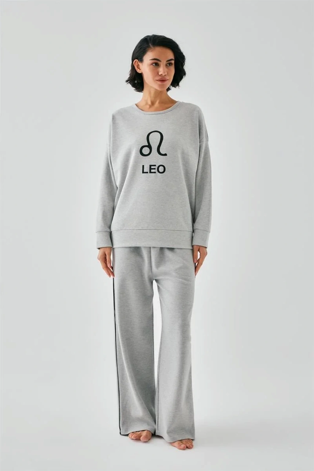 Çamaşır Kenti'nin özel tasarımı olan Kadın Gri Aslan Burcu Oversize 2 İplik Eşofman Ev Giyim Takımı, rahatlığı ve şıklığı bir arada sunuyor.
