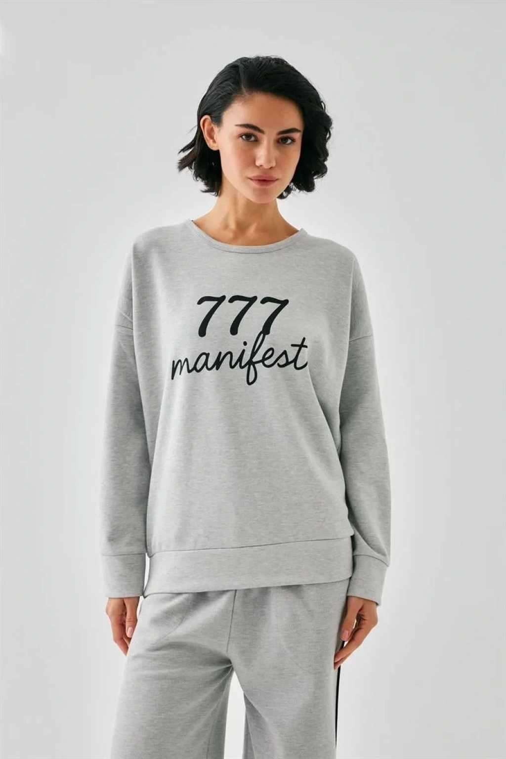 Kadın Gri Manifest Oversize 2 İplik Eşofman Ev Giyim Takımı, Çamaşır Kenti kalitesiyle şıklığı ve rahatlığı bir arada sunuyor.