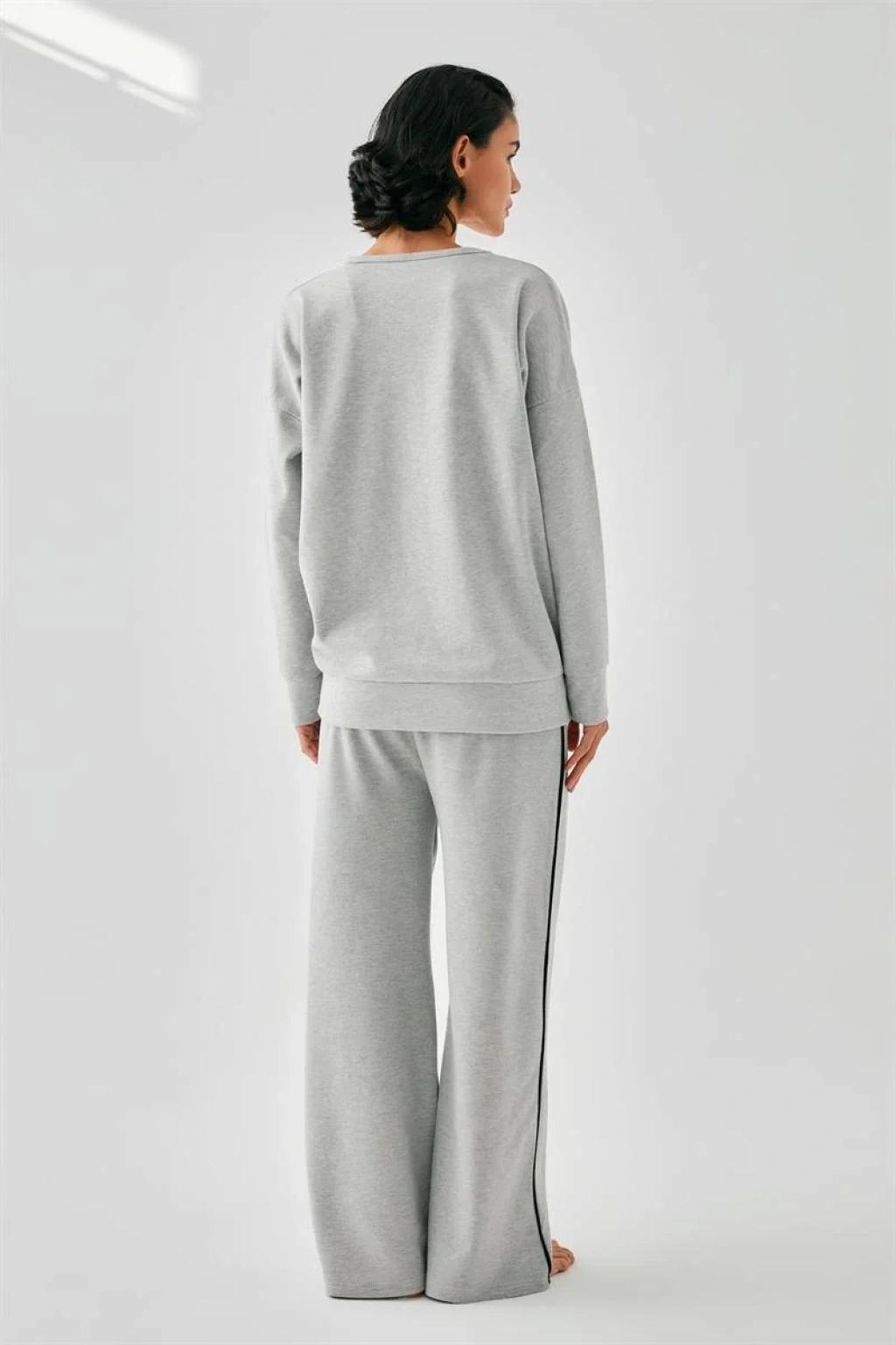 Rahat pantolonu ve uyumlu oversized sweatshirtü ile evde ya da dışarıda şık ve rahat görünmenizi sağlar.