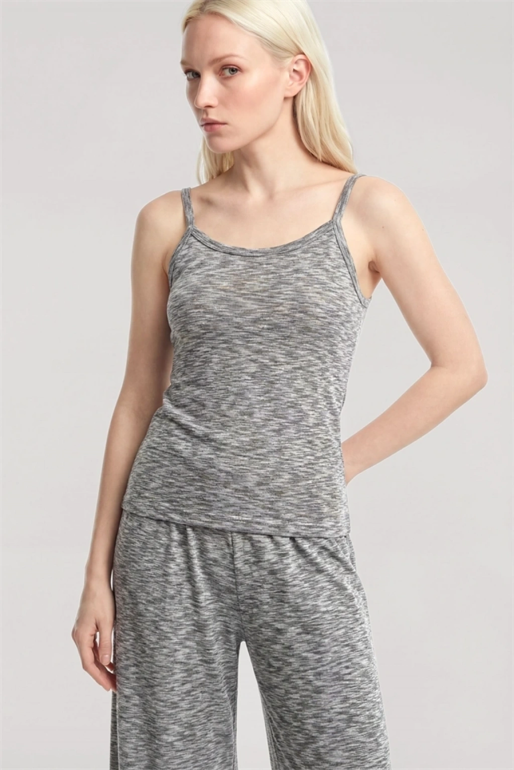 Minimal tasarımı ve yumuşak dokusuyla öne çıkan bu gri melanj atlet, günlük stilinize sade ve şık bir dokunuş katar. İp askılı yapısı sayesinde hafif ve rahat bir kullanım sunarken, modern görünümüyle farklı kombinlere kolayca uyum sağlar.