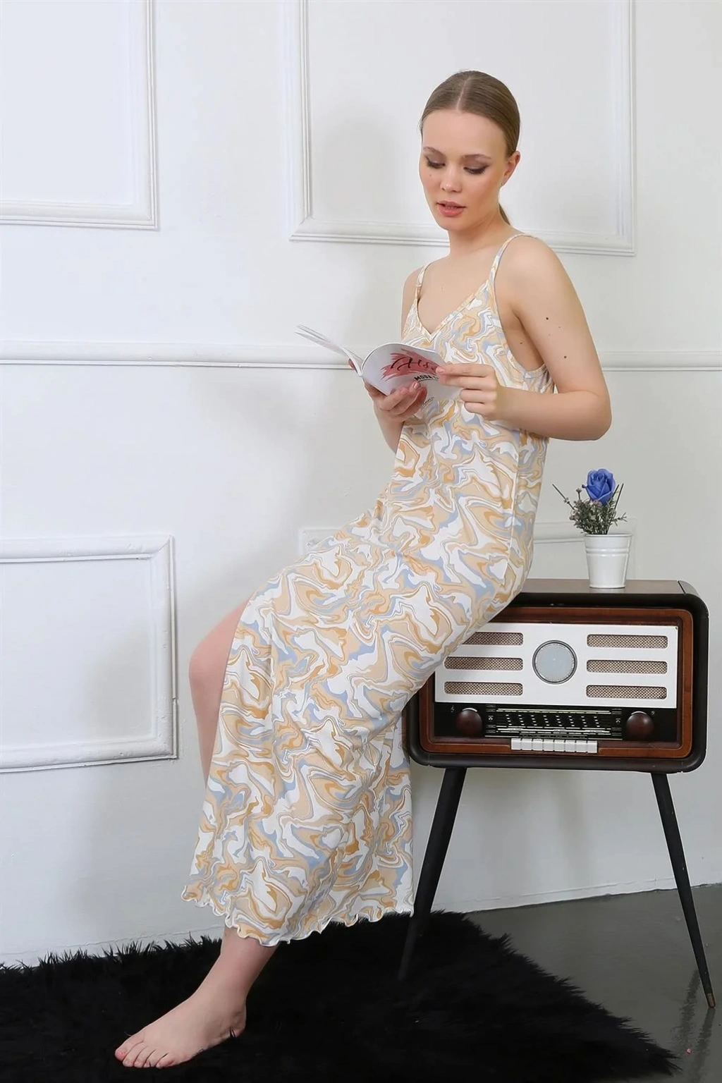 Çamaşır Kenti'nin şıklığı ve rahatlığı bir araya getiren Kadın İp Askılı Uzun Gecelik Krem, gece giyiminde konfor arayan kadınların favorisi olmaya aday. İnce ip askıları ve yumuşak kumaşı sayesinde gece boyunca rahat bir kullanım sunar.