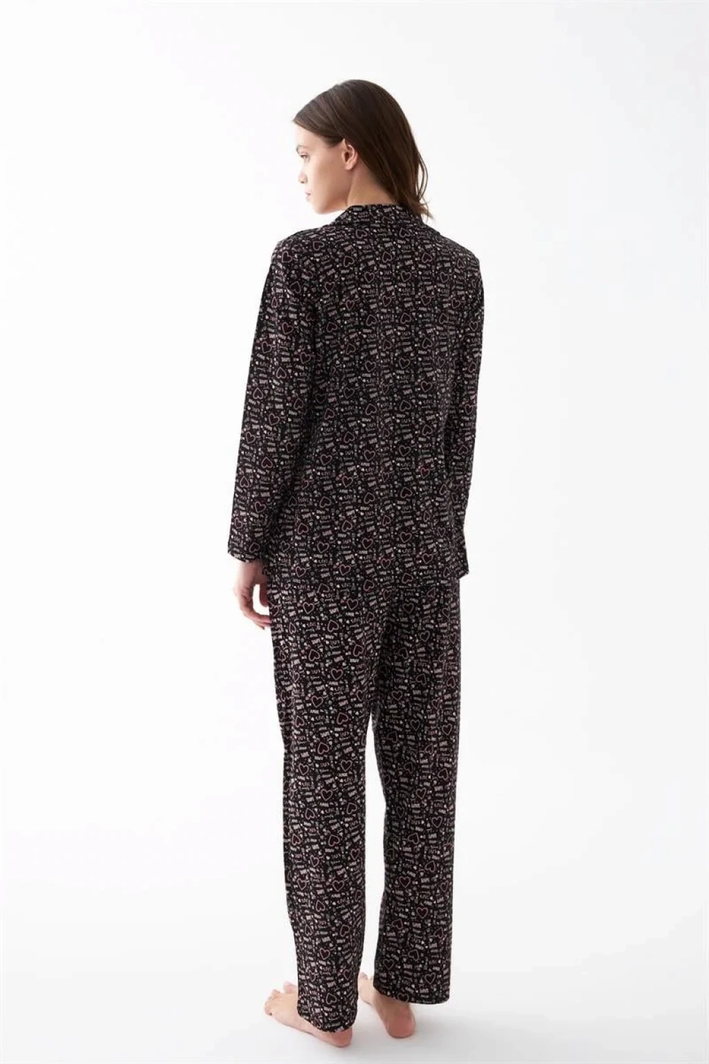 Çamaşır Kenti'nin kadınlar için özel olarak tasarladığı Siyah Düğmeli Kalp Desenli Pamuklu Pijama Takımı, şıklığı ve konforu bir arada sunuyor.