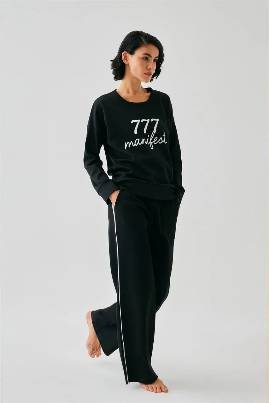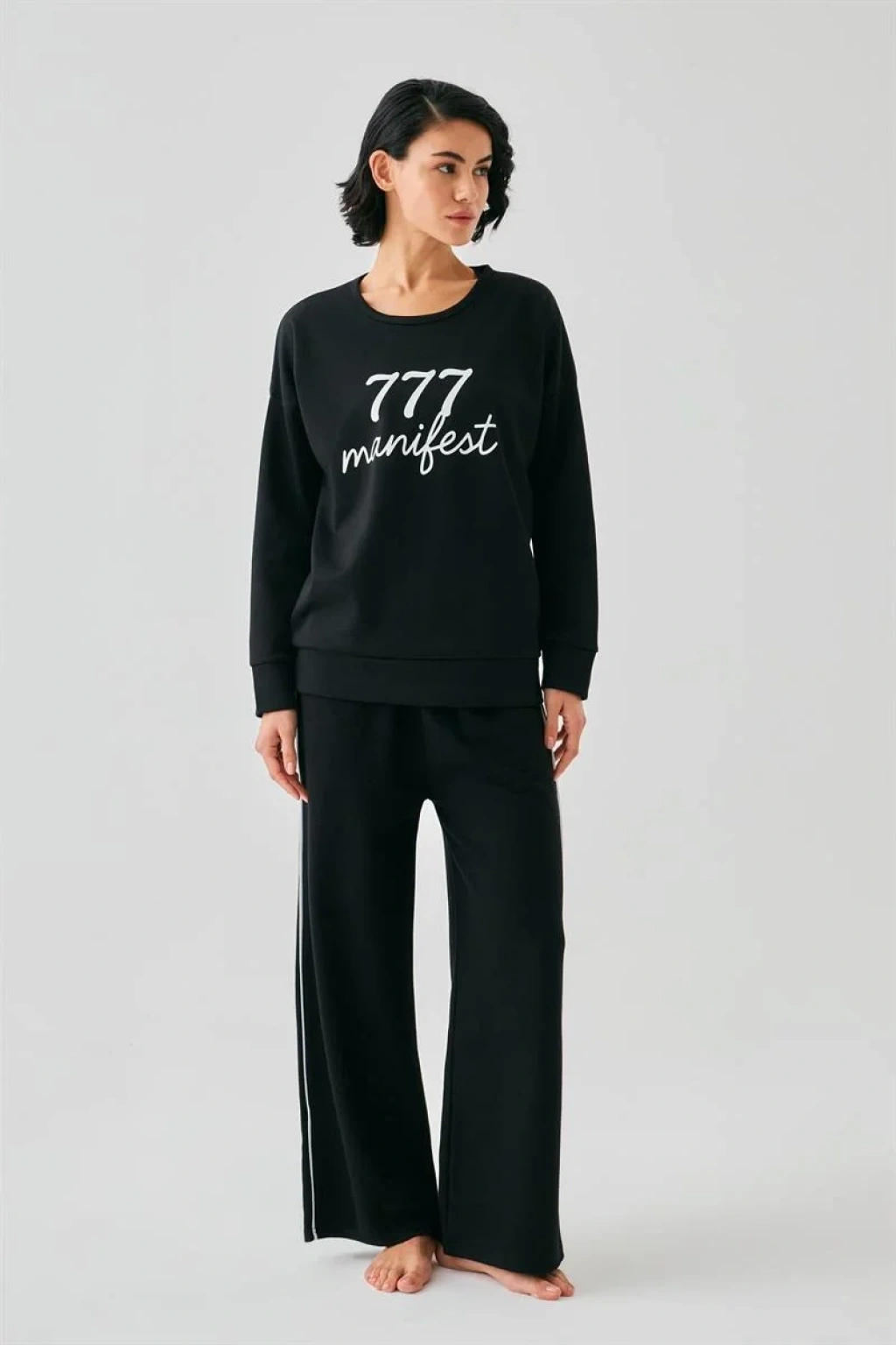 Kadın Siyah Manifest Oversize 2 İplik Eşofman Ev Giyim Takımı, Çamaşır Kenti kalitesiyle şıklığı ve rahatlığı bir arada sunuyor.