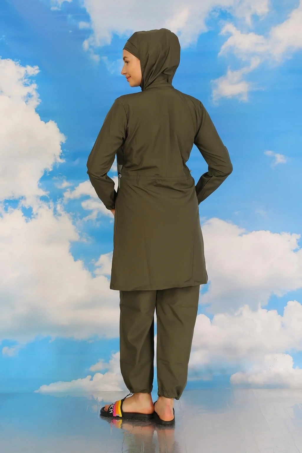 Çamaşır Kenti markasının özel tasarımı olan Kadın Tam Tesettür Mayo Haki ile plajda şıklık ve rahatlığı bir arada yaşayacaksınız.