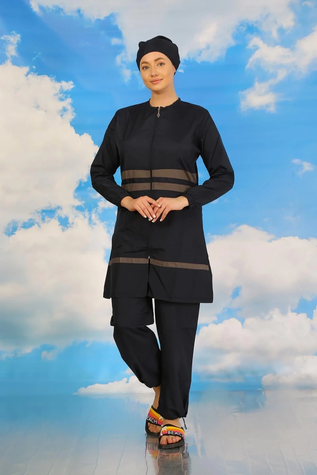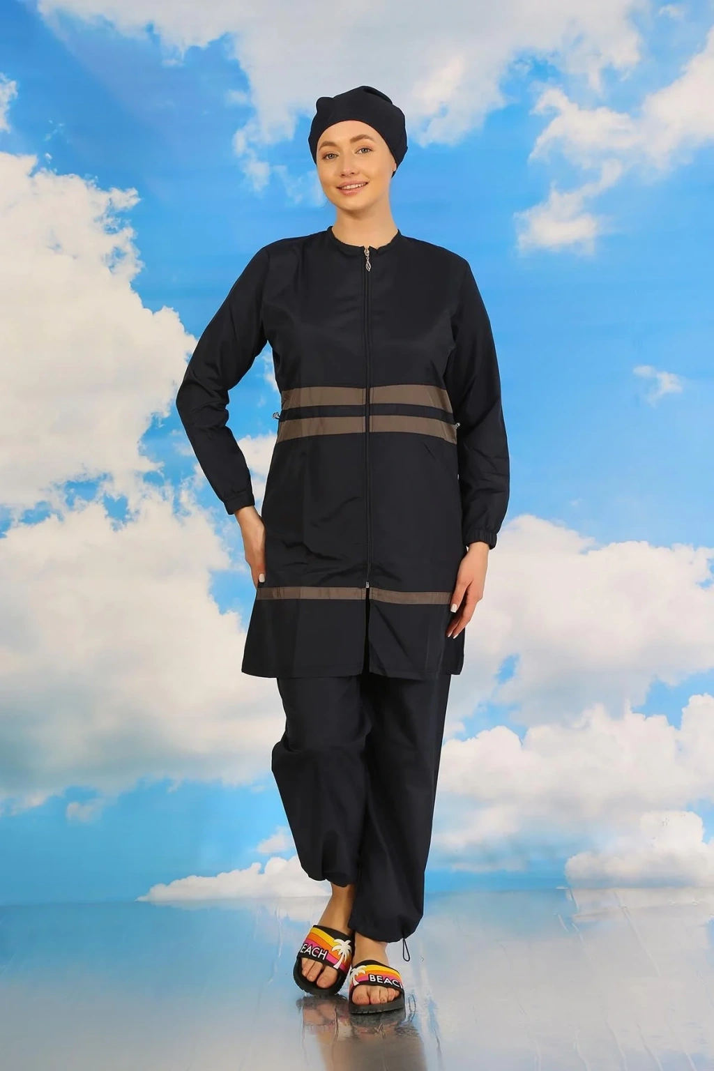 Çamaşır Kenti markasının özel tasarımı olan Kadın Tam Tesettür Mayo Lacivert ile plajda şıklık ve rahatlığı bir arada yaşayacaksınız.