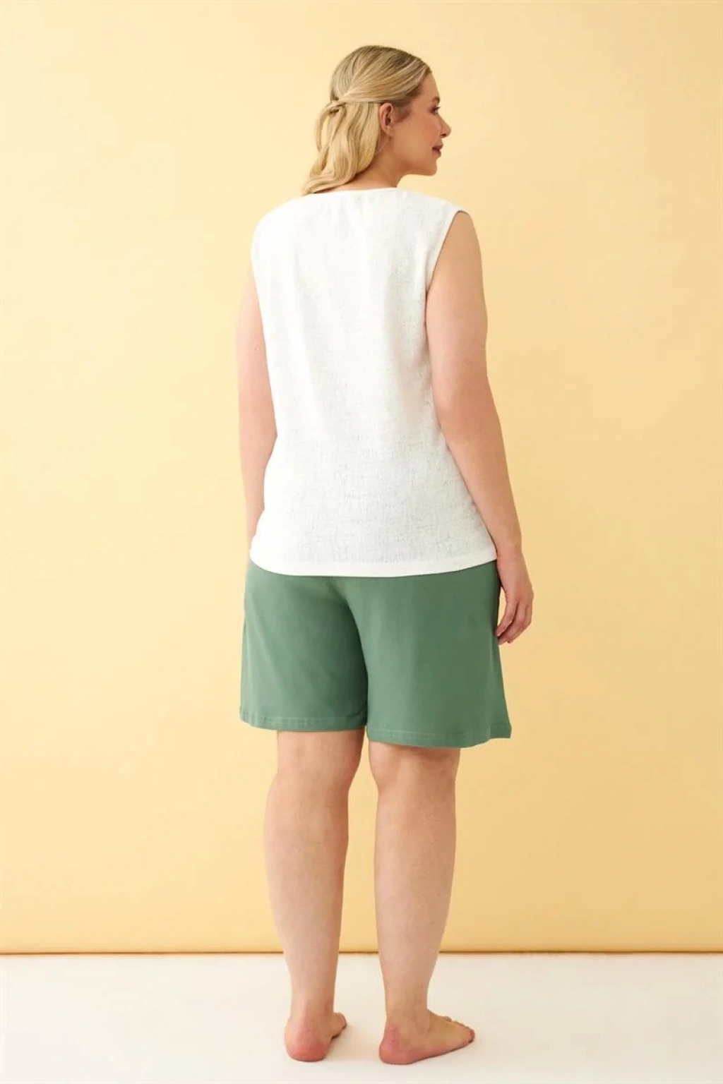 Büyük beden kadın şort arayışında olanlar için ideal bir seçenek: Çamaşır Kenti'nin rahat kesimli yeşil cepli şortu!